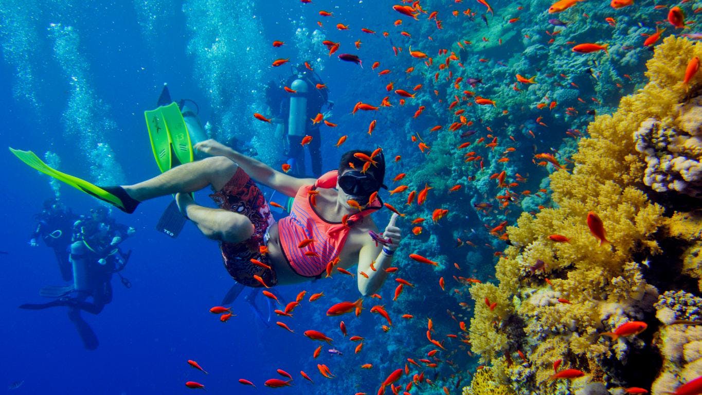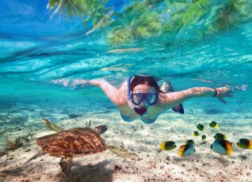 • Swim in crystal-clear waters filled with tropical marine life